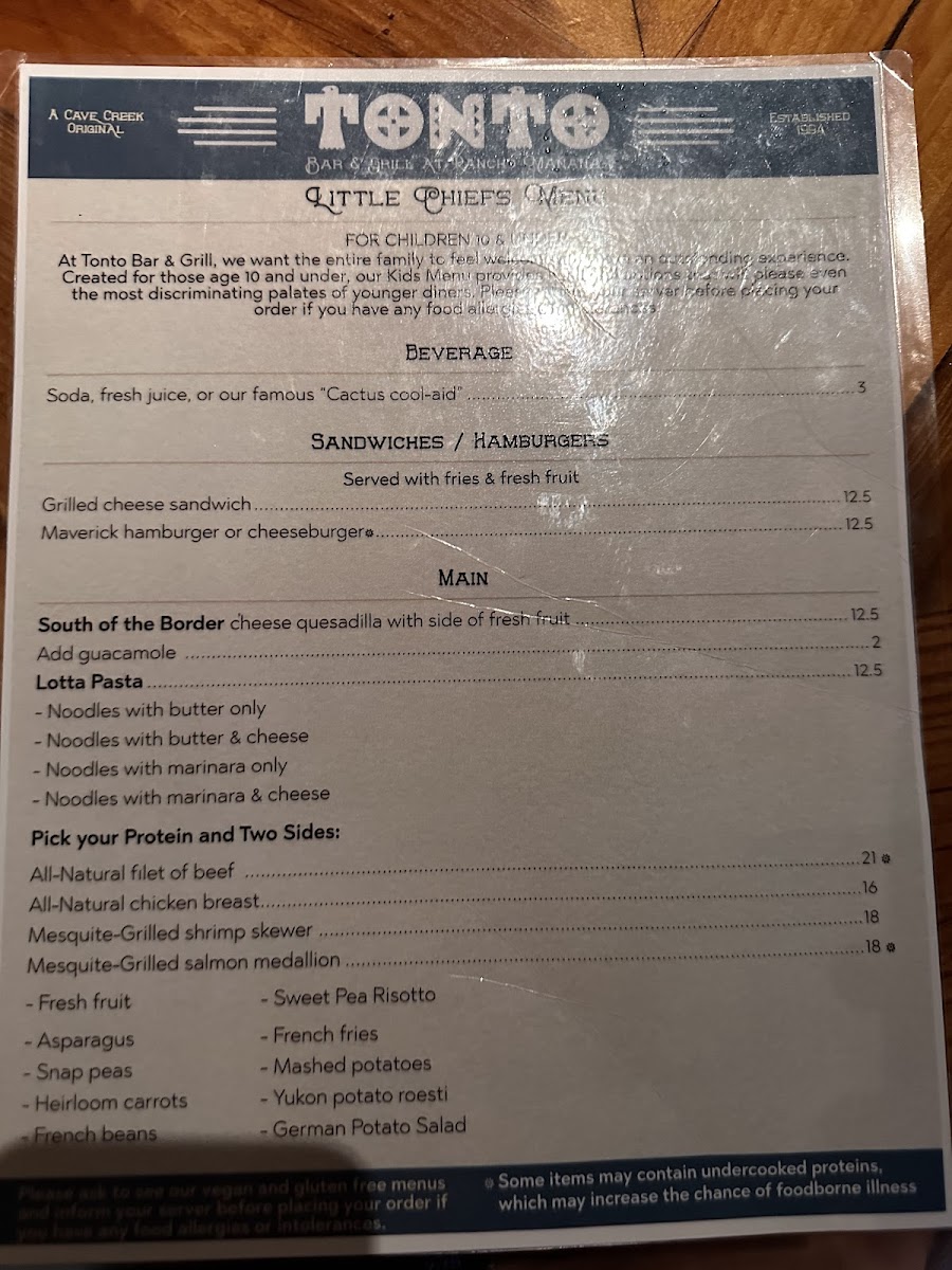 Tonto Bar & Grill Menu